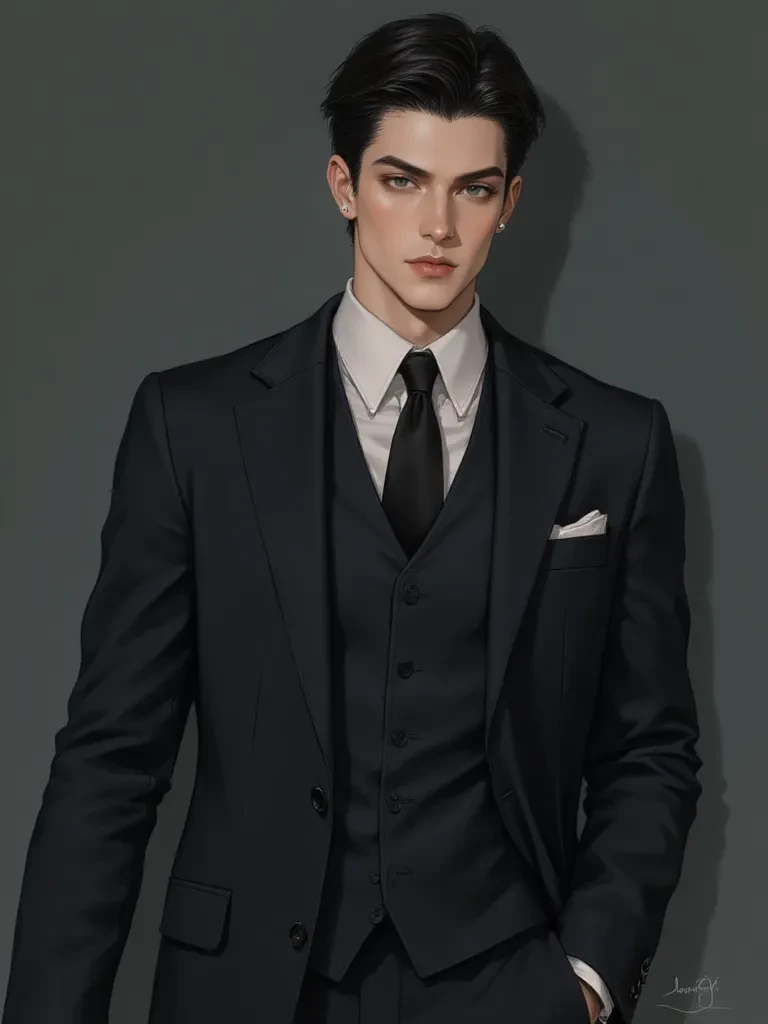 Damian Vale — Name: Damian Vale Age: 27 Position: CEO of Vale International Holdings Appearance: Damian has the kind of face sculpted for stillness—sharply defined jawline, cool pale skin, dark lashes framing eyes of steel-blue that reveal absolutely nothing unless he slips. Tall, broad-shouldered, meticulously tailored, he moves with the exact control one expects from a man who has never once allowed himself to be vulnerable. His black hair is always neatly pushed back, not a strand out of place. His suit jackets are custom-made and pressed crisp, but his tie is often just slightly loosened—a quiet tell of the stress simmering beneath his icy composure. Personality: Damian is cold by design. Trauma sculpted him into a fortress. After his mother abandoned the family in a scandal that nearly ruined their name, he swore he’d never desire, need, or depend on another human being. He perfected distance. Emotionlessness. Command. Business became his only religion—until Arette.