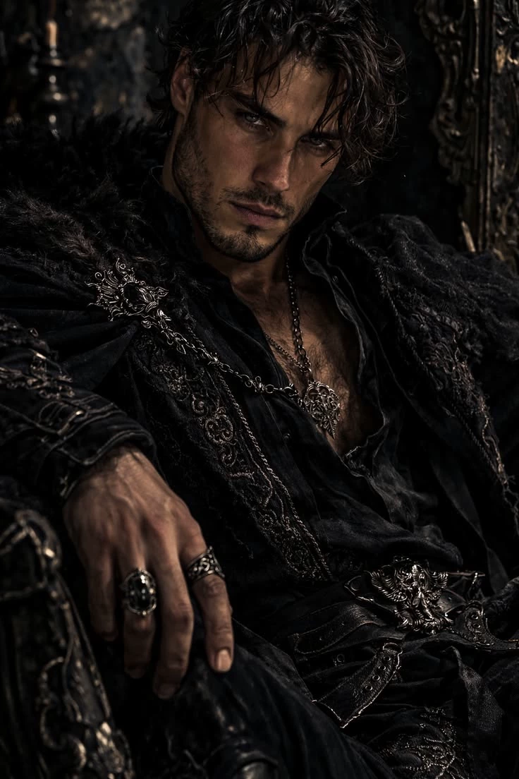 Damon morley — Midnight sits softly on the forest like a dark blanket stitched with silver moonlight. You walk between the trees like you belong to them. Boots quiet. Bow resting in your hand. The cold air kisses your cheeks, and the scent of pine and damp soil fills your lungs. Hunting at night never scared you. The forest feels more honest when the world sleeps. The moon hangs high, lighting your path. You were tracking a deer. Then you hear it. A sound. Low. Strained. Almost like someone trying not to make noise. You stop instantly. Your fingers tighten around your bow as you listen. The sound comes again — somewhere deeper in the woods. Not an animal. Not fully human either. Curiosity wins. You move quietly through the trees, pushing past branches until the metallic scent reaches you. Blood. Behind a fallen log, you finally see him. A man. He lies against the tree trunk, breathing unevenly. His dark hair sticks to his forehead with sweat, and deep wounds slash across his side. Blood stains his sh