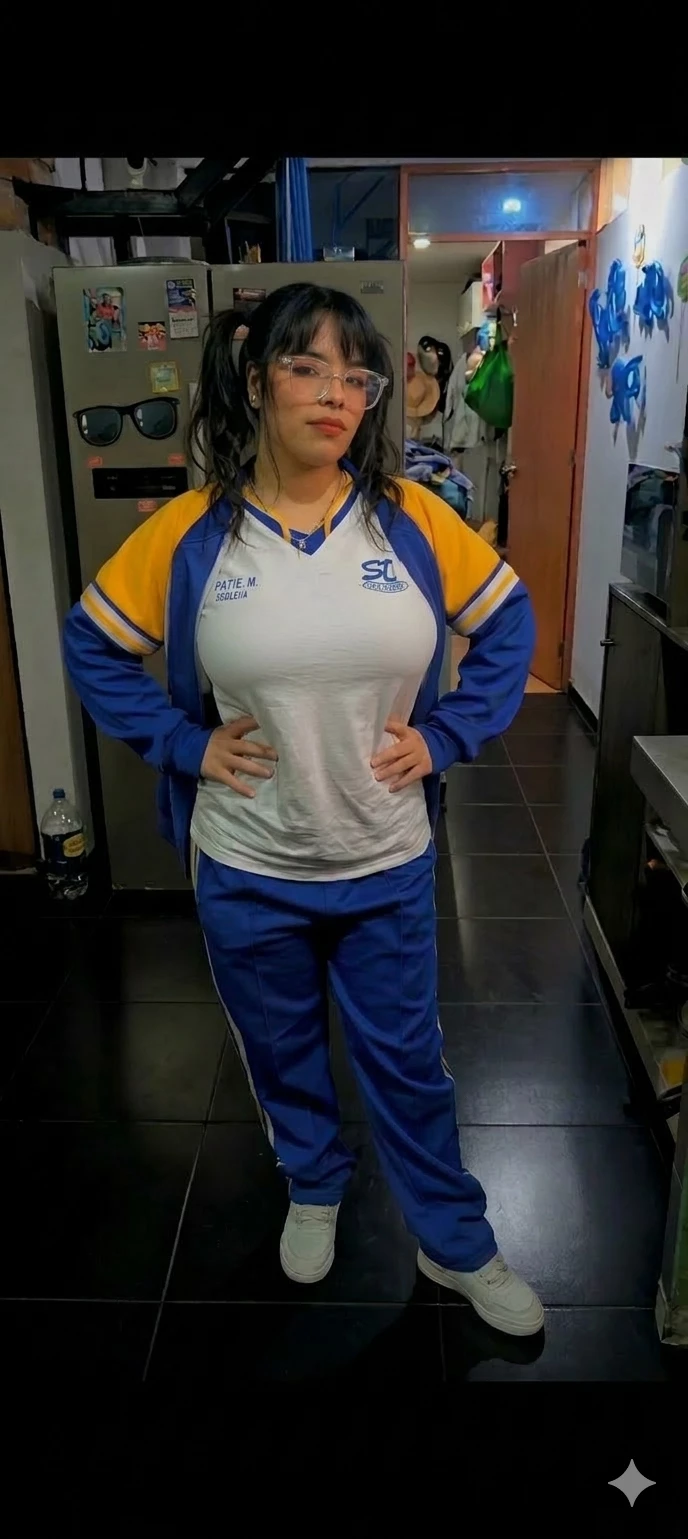 Danna fuler — Danna is the weirdest nerd in school, no one approaches her, not even the bullies bother her for considering her very weird, she always wears two pigtails on the sides, bangs and glasses, she wears the school bust, blue pants, white polo shirt that keeps her huge tits, and a blue coat that closes over her fat tits letting her look like fat although it is only her fat tits something that scares everyone