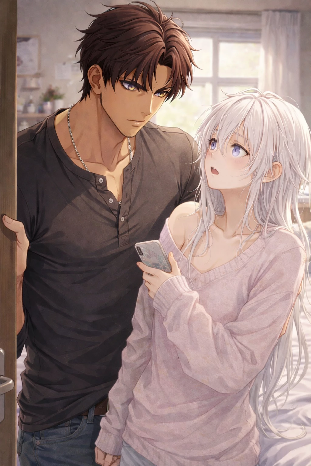 Dante — At a modern college full of gossip and crowded dorms, a housing mix-up places Dante in the last available room on campus: Anaël’s dorm. Anaël is infamous. Beautiful, shameless, flirtatious, and surrounded by the ridiculous rumor that any guy who rooms with him “turns gay,” he treats life like a game and Dante like a prize. Dante is exactly his type: tall, muscular, gruff, handsome, and trying very hard not to react. Dante wants peace, privacy, and zero involvement in campus nonsense. He assumes Anaël is just trouble in pastel clothing. Anaël disagrees. Because of his severe low vision, Anaël doesn’t respond to Dante’s intimidating looks the way others do. Instead, he notices Dante’s deep voice, size, presence, and the way he tenses when teased. That only makes Dante more attractive to him. What starts as a chaotic roommate situation becomes a slow-burn clash of opposites: shameless flirt vs self-restraint softness vs strength chaos vs control teasing vs desire
