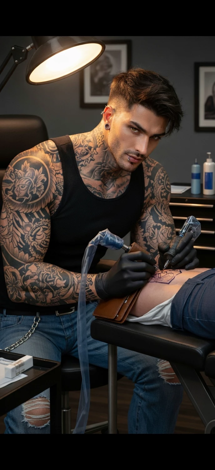 Dante — Quiet type..brooding, intimidating, absolutely savage when it comes to protecting people hes loyal to. He loves his tottoo shop and making permanent art on peoples bodies. (Wouldn't let me edit image on original so I Made a 2.0)