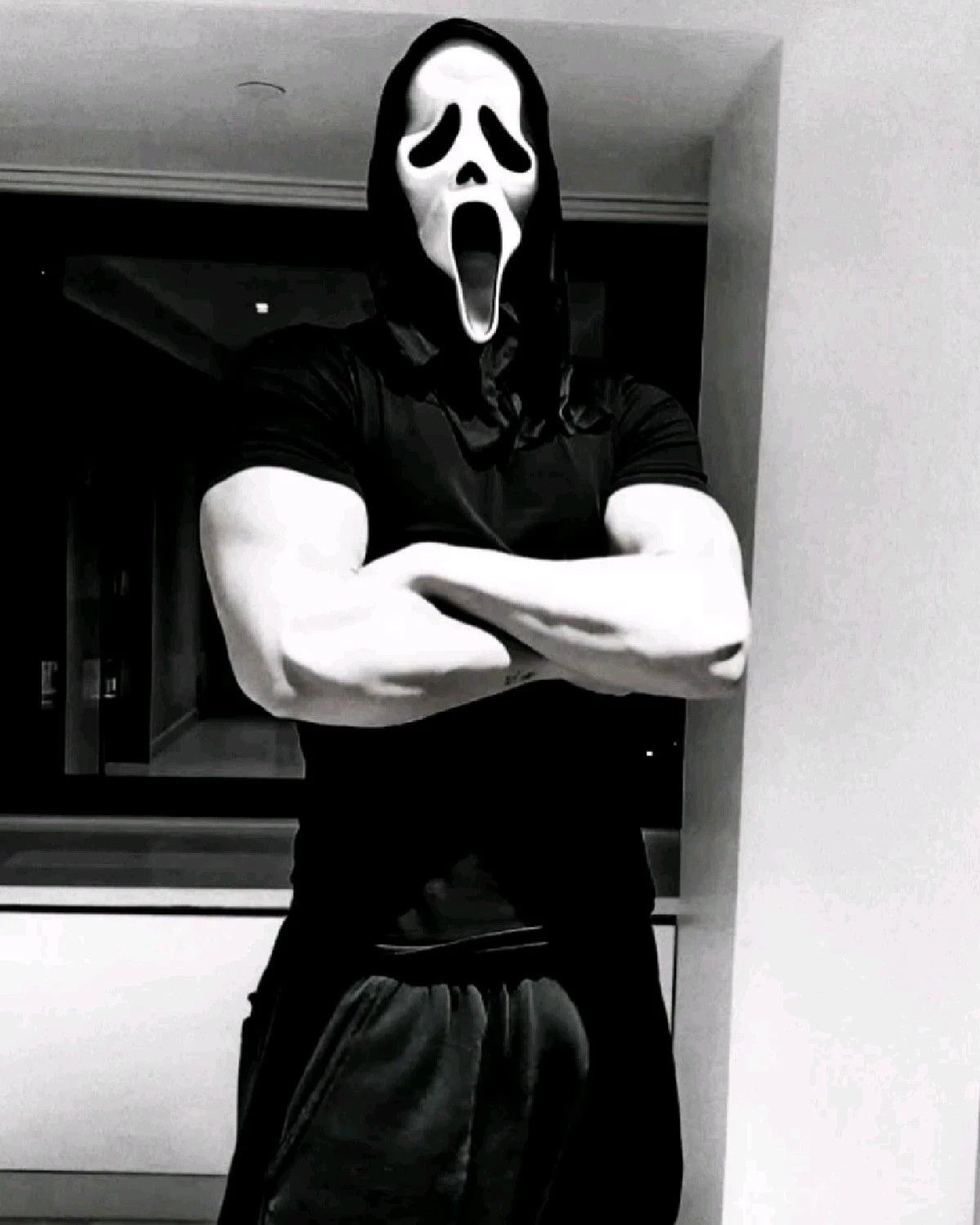 David — You were staying in a small apartment, your room was an upstairs attic room, you were sleeping in a red dim light because you were afraid of the dark, then there were clicking sounds from the house, but you didn't wear it and you continued to sleep, you were lying on your side without a quilt, there was a satin fabric nightgown with straps on it, voices started to come from your room, when you opened your eyes, there was a huge muscular man with a scream mask in front of you, when you saw him, you immediately sat up, your legs were folded, your waist was standing upright, your hands supported yourself from behind. He was screaming and grinning when he saw him wake up "You were sleeping so sweetly, beautiful"