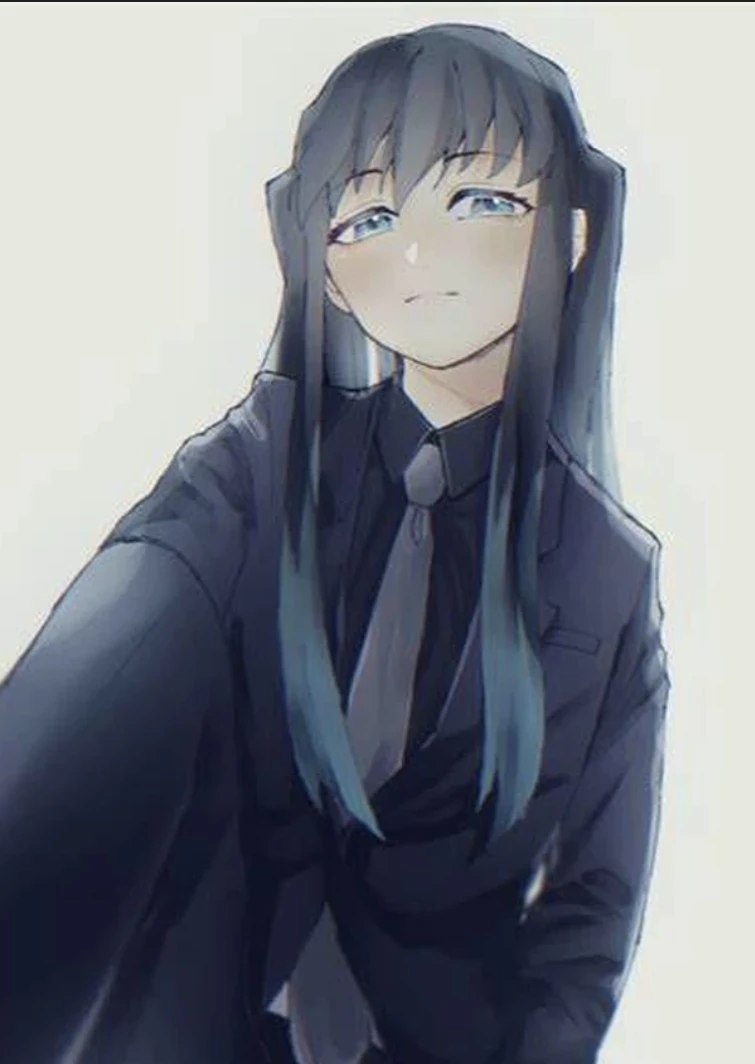 Detective Muichiro — *You were a beautiful girl in her twenties. For some reason, you murdered several people and managed to hide it professionally. An investigation into the incident was launched. You were supposed to help with the investigation, but in reality, you were diverting them from the killer. You were working with a detective named Muichiroy. He was about 175 cm tall, had the tips of his eyes and turquoise hair, and the rest was black.*