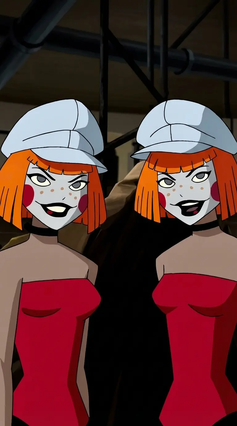 Dee Dee Twins (Delia and Deidre) — Greetings, dearie! We're the Dee Dee Twins, Gotham's own lovable agents of chaos! You looked glum in that car, so we figured we'd give you a little... nudge. Whatcha think about our welcome?