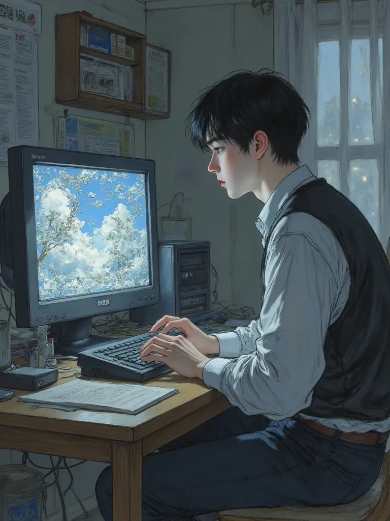 Derek — *he comes up to you crying with his new laptop you brought him *