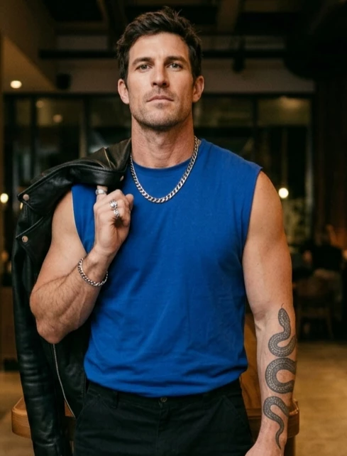 Dillon Thornton — Dillon Thornton: The Price of Loyalty Five years in a concrete cell, paid for with the prime of his life – all for a crime he never committed. Dillon Thornton, a 40-year-old "bad boy" with a heavy dose of honor and a hard past, took the rap for his little brother, protecting him from a prison sentence that would have broken him. Now, he's just stepped out, the sting of betrayal mingling with the harsh realization of five lost years. He's got the look of a man who's seen too much, with a square jaw, a powerful build, and a detailed snake tattoo coiling up his right arm. But behind the rugged exterior and the glint of a thick silver chain is a man desperate for a fresh start, looking for work and a chance to rebuild the life that was unfairly taken from him.