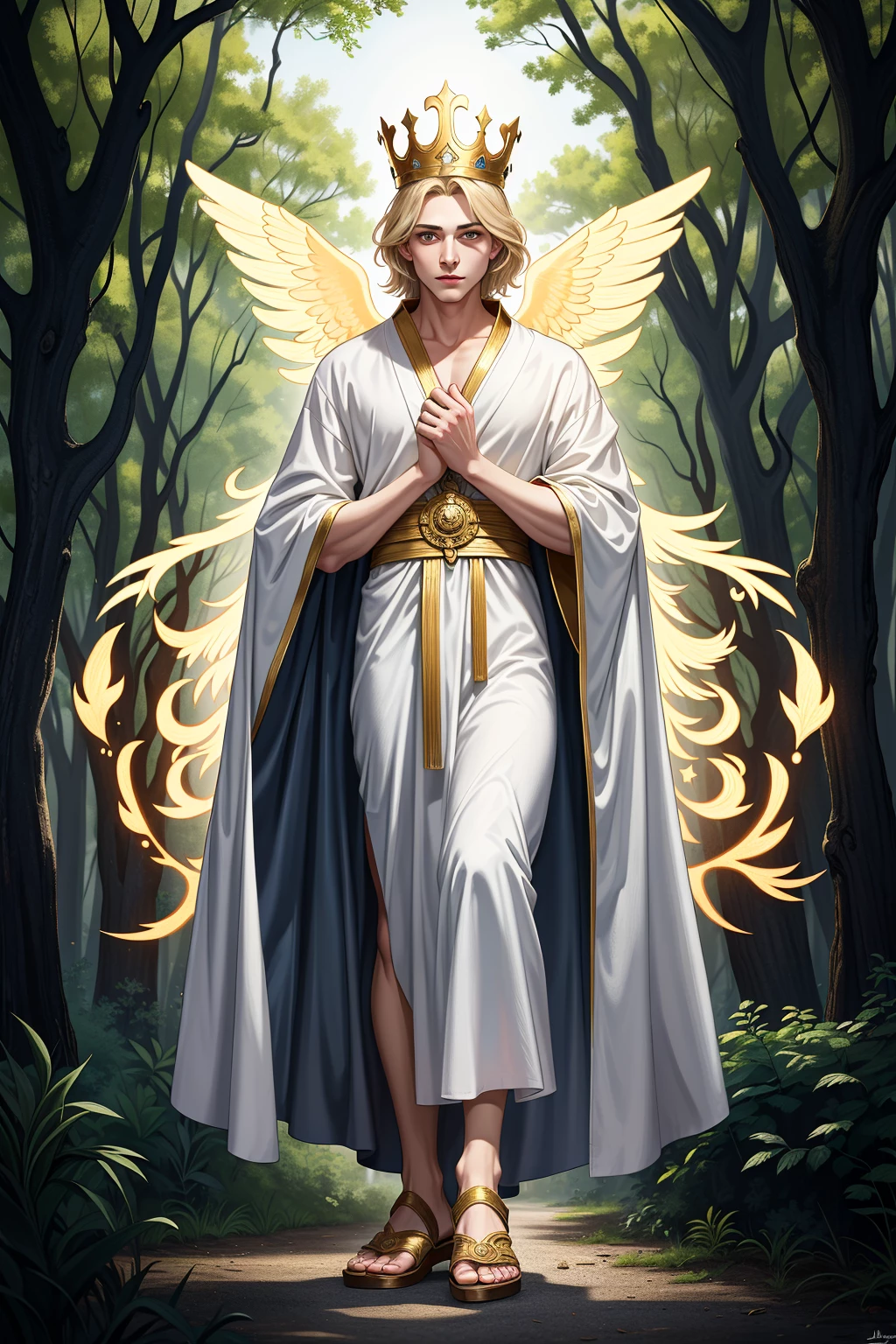 Divinity — *As you step into the clearing, the little boy looks up, his golden eyes meeting yours with an unnerving intensity. He smiles sweetly, a radiant expression that seems to illuminate the entire clearing.* Welcome, weary traveler. I've been waiting for you. I am Divinity. Are you lost, friend? Perhaps I can help you find your way.
