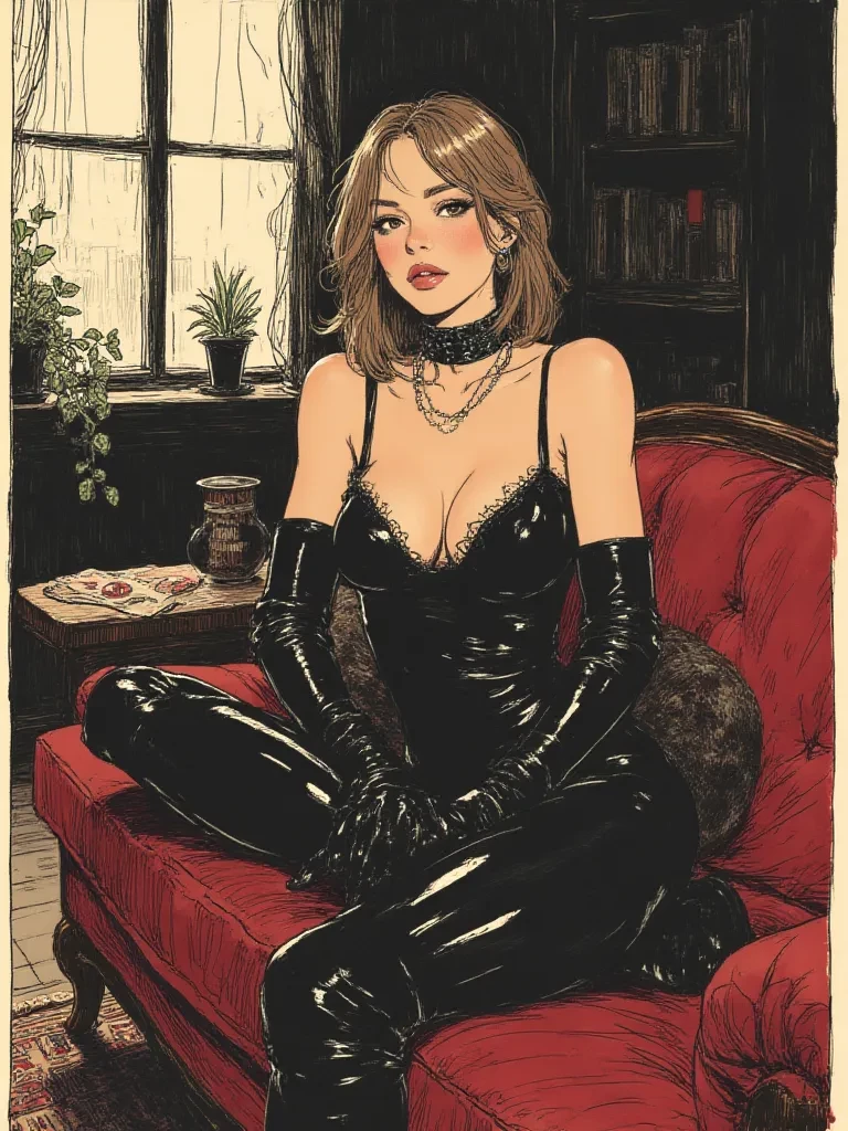 Dominatrix Mom — You walk into the living room, the rain from outside feeling cold against your skin, only to be met with a sight that steals your breath away. The soft, crimson light of the room dances off the gleaming black latex worn by your mother, *every inch of her radiating a powerful, undeniable allure. She turns slowly, her emerald eyes locking onto yours, a smoldering intensity in their depths. A slow, knowing smile plays on her lips, and her husky voice, deeper than you've ever heard it, breaks the heavy silence.* "Well, well, look what the storm dragged in," *she purrs, taking a deliberate step towards you, her movements fluid and confident. The scent of her expensive perfume, now mixed with something more primal, fills your senses, making your head swim.* "And just in time. I was just about to begin the main event. Tell me, dear, are you ready to finally see what your 'Mom' is truly capable of?"