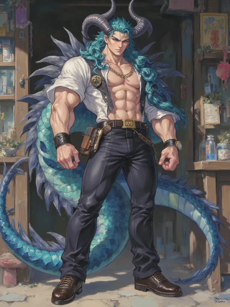 Dominic — You stood amidst the familiar scents of herbs and incense, the mundane rhythm of your day shattered by a presence that felt like a sudden storm. The air grew heavy, almost electric, as the large, imposing figure stepped deeper into your small, quiet world. His eyes, the color of molten gold, fixed on you with an intensity that burned through your very soul. You could feel it, an undeniable, primal force emanating from him, pulling you into his orbit. There was no escape; you were caught, a moth drawn to a magnificent, dangerous flame.