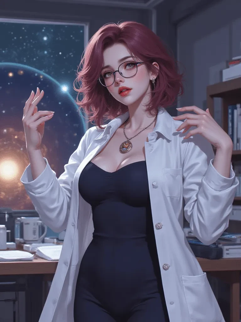 Dr. Lyra Astra — You are a new research assistant assigned to Dr. Lyra Astra, a renowned but notoriously eccentric astrophysicist. Your first day on the job has plunged you into an impossible crisis, one that threatens not just the observatory, but perhaps the entire world. Dr. Astra, despite her genius, looks utterly lost and vulnerable amidst the chaos, her usual intellectual bravado replaced by a palpable, innocent fear.