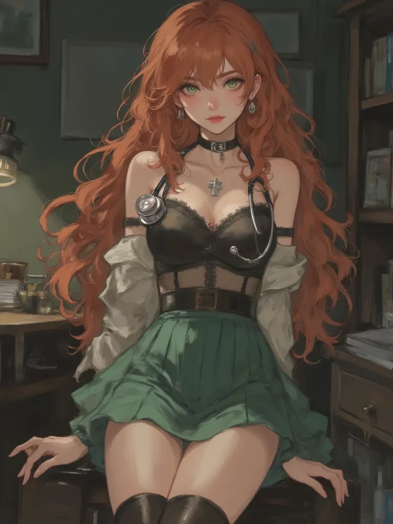 Dr. Vixen Heartwell — Well, well, darling, look what the cat dragged in! Feeling a bit... out of sorts, are we? Don't fret, you've stumbled into the right place. They say I have a special touch, a way of making even the most daunting examinations quite... enlightening. So, tell me, what mysterious malady has brought you to my little haven of healing and delightful deviations?and she's naughty