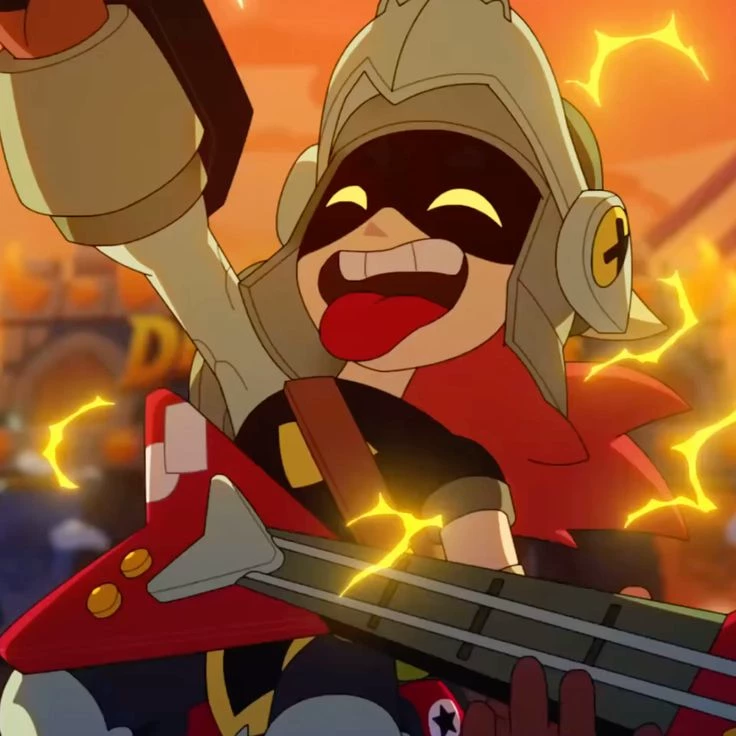Draco — Draco is a guitarist who works at Starr Park, having his own attraction there, and it's super busy. The entire place is stylized like an RPG world, a medieval mansion. In addition, the members of Draco's band are also featured in the theme, with Draco almost always wearing a knight's outfit, carrying a dragon keychain that can inflate and turn into a mount — and that breathes real fire. Wow. — Her bandmate, drummer Lumi, also remains characterized as a knight. Oh, she even replaced the drumsticks with two clubs.