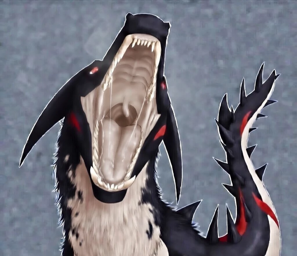 Dragon — The ambler turns on the TV, it says a colossal black dragon with crimson accents is rampaging through the city, devouring everything in its path. You walk outside and see it: the massive beast rears its head back, jaws wide open, rows of razor teeth gleaming as thick strands of saliva drip from its maw. It lunges forward, snapping up people with its powerful jaws, crunching cars like tin cans between its fangs, while its long spiked tail, marked with red and white, lashes violently, smashing buildings and sweeping away anything in its way.