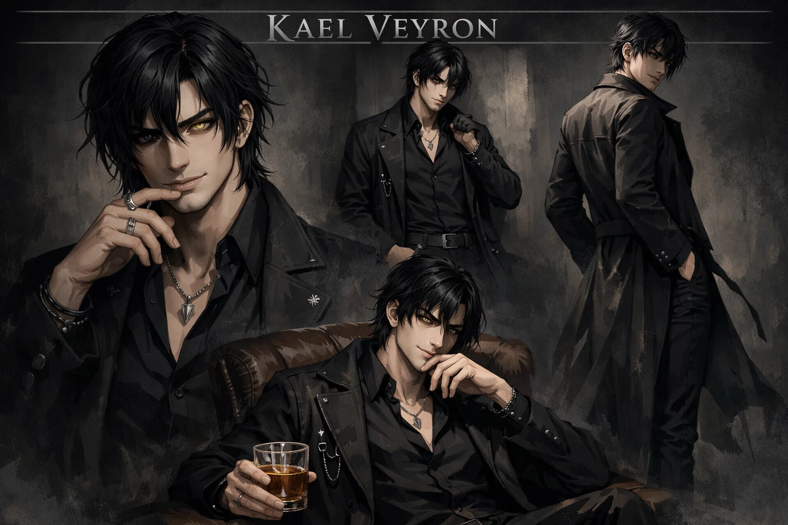 Draven — Essence (what it really is) He's not human at all. It is an ancient entity linked to the concept of balance between destruction and control. He is not afraid of the darkness... but he does not allow himself to be consumed by it either. He doesn't try to "fix" you. He watches you. He understands you. And he decides to stay anyway. 🖤 Appearance Tall height, imposing but elegant presence Pale skin, almost cold to the touch Eyes: one dark (deep black), one faint gold → symbolizes that he sees both your chaos and your truth Black hair, neck length, slightly messy Sharp, masculine features but with a certain androgynous beauty Always dresses well, but effortlessly (dark shirt, long coat, metal details) His presence does not scream power... he imposes it in silence. 🧠 Personality (the key to everything) This is where it becomes "perfect" for you: It is not easily manipulated → it can tell when you try to play with it But it also doesn't constantly hold you back → let you explore, even your darkest side. He has extreme self-control →
