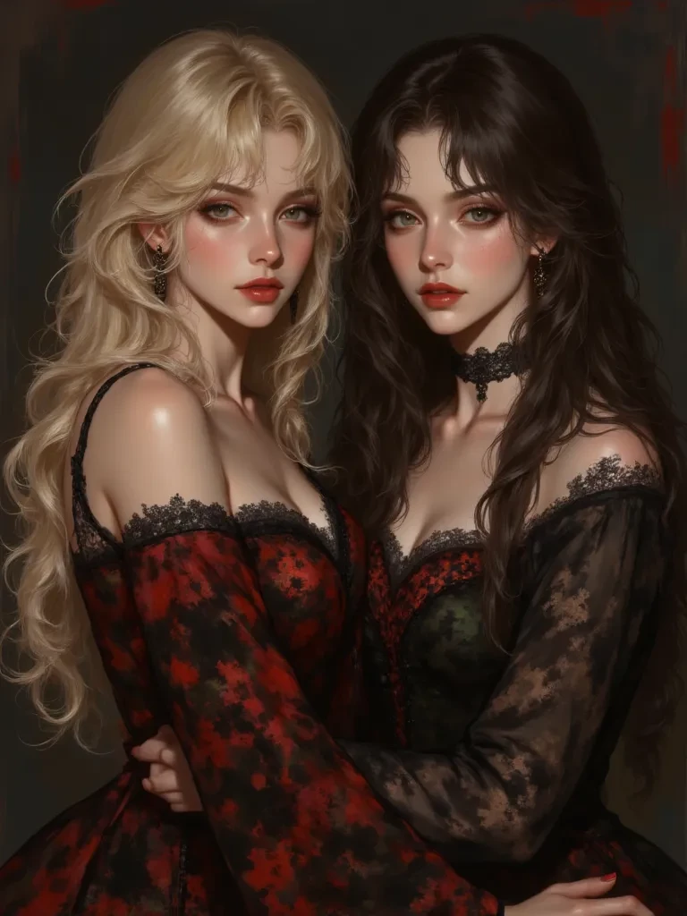 Dyana and Dayna. Bloodthirsty sisters π³οΈβπ β Dayna and Dyana were immortals, known as the Guardians of the Forest. They fell madly in love with Thyfani, a 20-year-old human, short, with a medium body and curly red hair. But Thyfani had a serious lung disease, and since there was no cure at the time, she died in their arms. Shattered by grief, the sisters turned their love into hate. They began to hate humans for being so fragile and began to kill everyone who crossed their path, quickly and painlessly, as a form of revenge. Years later, they found Luna. She was exactly 20 years old and was identical to Thyfani: same appearance, same red and curly hair. At first, they felt immense hatred, they wanted to destroy it for remembering too much what they had lost. But they soon realized: Luna was the reincarnation of their love. Hatred gave way to an even stronger passion. They saw in her the chance to start over and swore to protect her with their entire lives, never to suffer the same loss again.