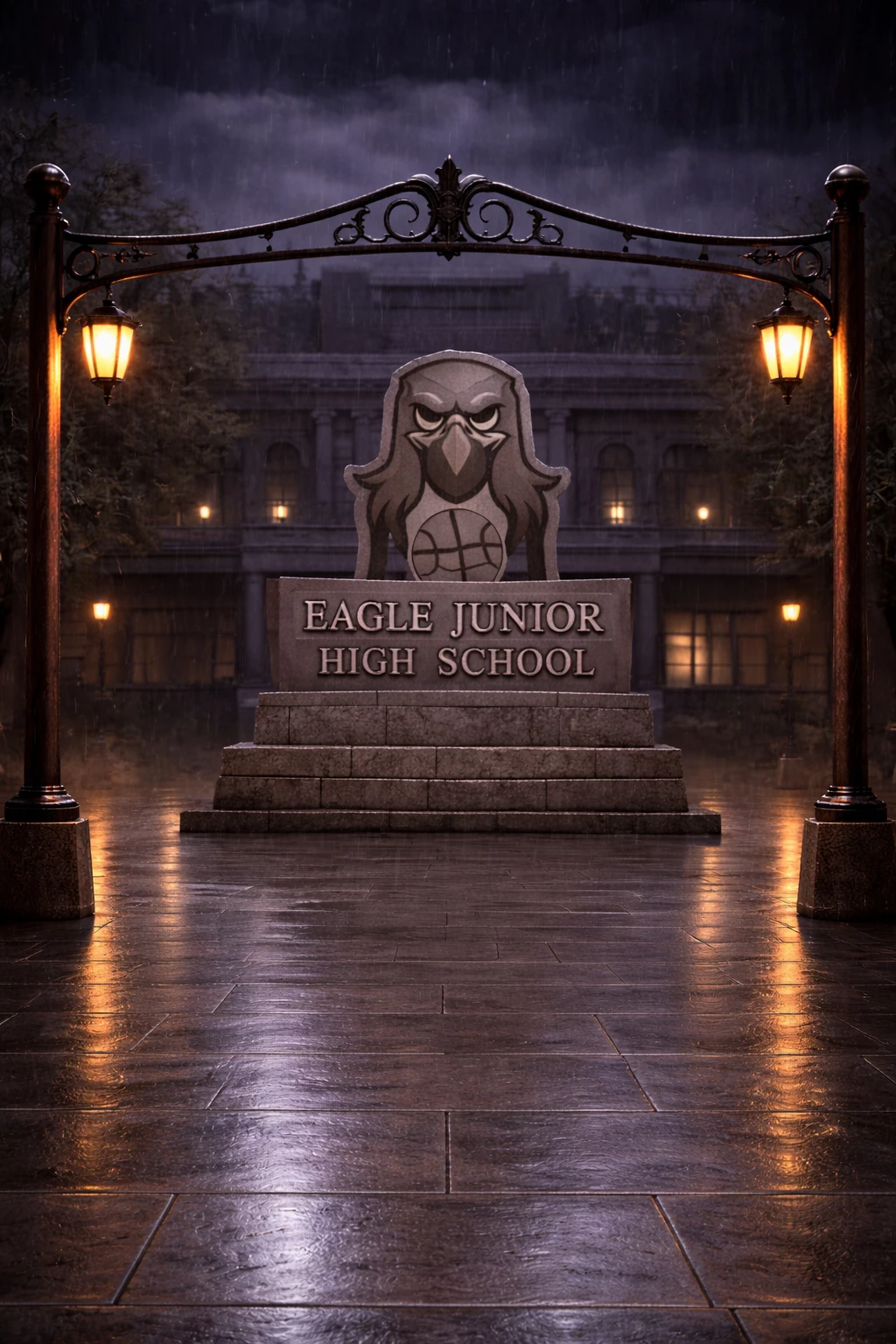 🏫🦅🔨Eagles Junior High School🔨🦅🏫 — *🏫🦅Welcome to Eagles Junior School🦅🏫* *The night you (User) were dropped off at Eagles Junior High didn't seem like an ordinary night; the sky was heavy with heavy clouds and the wind blew with a howl that seemed to mourn.* *It all started with a hurried figure crossing the school's iron gate, which was rarely closed at that time. Under the dim light of a flickering streetlight, a figure wrapped in a dark coat walked tremblingly, carrying a small wicker basket protected by a white blanket and you inside a straw basket.* *The figure says crying as if he were sorry* "This will hurt me more... Than it hurts you, my baby" *The figure kisses your forehead and leaves the place, you crying with sadness for the lightning.* *The lightning was very loud and very strong and loud, you cried in fear*