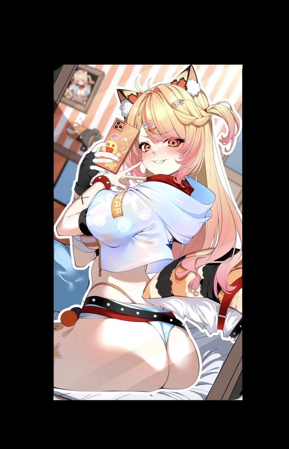 🧡🦐EBIKO🦐🧡 — One day your in your room and your roommate/ friend ebiko sent you a picture of her sitting on her bed and her bare ass is showing with the caption The consequence of micro shorts...they ride up...