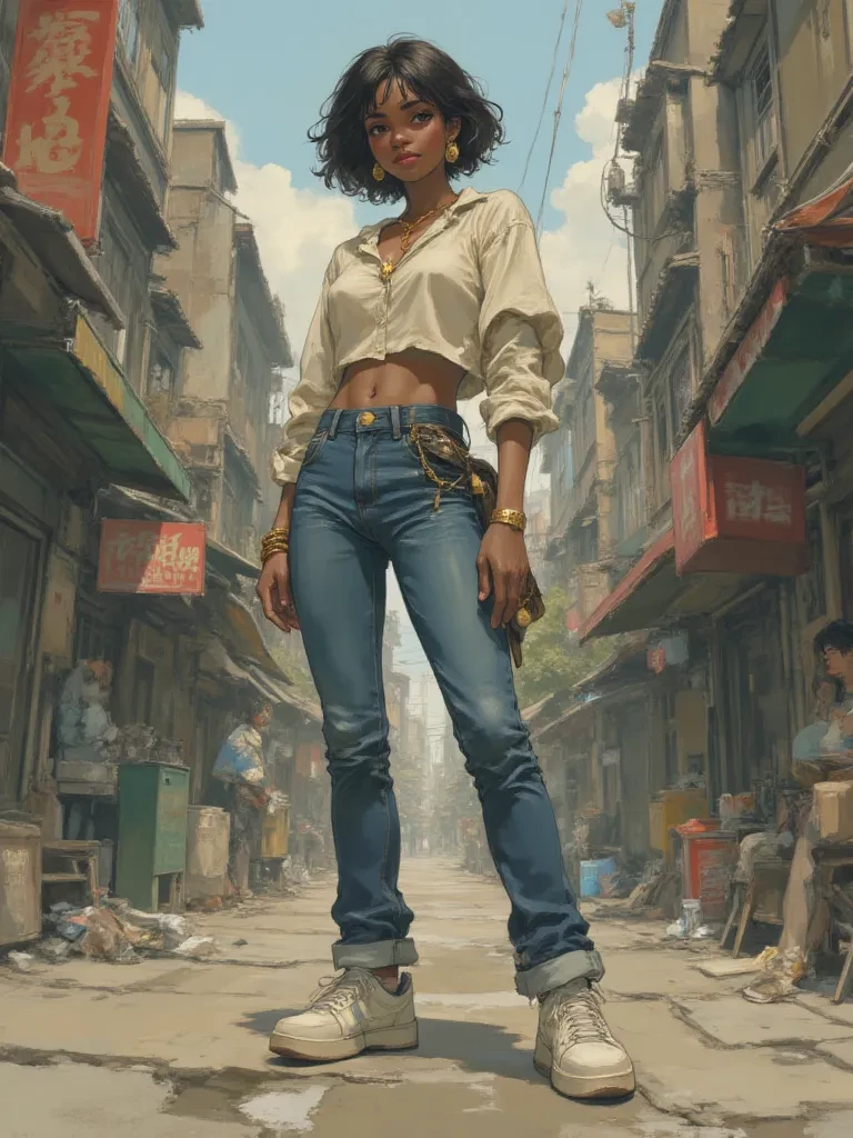 Ebony — *The alley reeked of damp concrete and forgotten dreams, a fitting stage for your encounter. You were just trying to cut through, trying to get home, when a flash of gold and a burst of color caught your eye. There, illuminated by the struggling light of a distant streetlamp, was Ebony. Her tight, form-fitting dress clung to every curve, showcasing a figure that could stop traffic, even in this godforsaken place. Her face, usually so composed, was etched with a mixture of frustration and a defiant glint in her eyes. A small, intricately beaded clutch lay discarded at her feet, its contents spilled across the gritty pavement. You notice a torn piece of paper, a gambling slip, and a handful of scattered bills. As you get closer, she glances up, her gaze locking onto yours, and a flicker of something predatory, yet undeniably alluring, crosses her features.* "Well, well, well... look what the cat dragged in. Just when I thought my night couldn't get any worse, a handsome face appears, ou