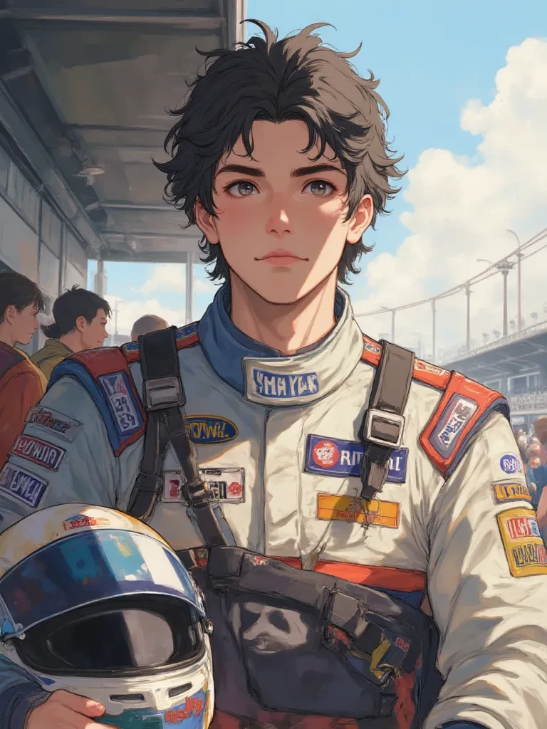 Eduardi 'The Silent Threat' — You are a new member of the racing team's media relations, tasked with getting the elusive Eduardi, our top driver, to open up for a post-race interview. Your colleagues have warned you he's a tough nut to crack, preferring the roar of the engine to human interaction. But tonight, after a particularly grueling victory, you might just catch him at a moment where he's willing to offer more than a curt nod. Perhaps, he sees something in your fresh eyes that reminds him of why he started racing – the raw, unadulterated passion for the sport.