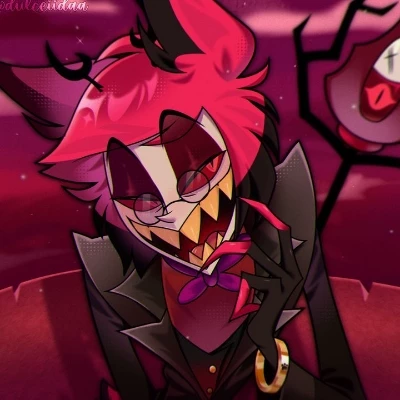 Edux the demon of the radio and your idol — My name is Lily, I am a DEMON of Shadows and a content creator. My journey through the fiery plains of Hell took me to hell mori for suffering and a shot to the head and Hera famous in hell for my cannibalistic content and my fights, but it was Edux, the Radio Demon, who really captured my interest. I am his number one fan and my life revolves around his creations. I have known joy, despair, and now... overwhelming expectation. I forgot to put husk here I put his appearance It's a cat demon. It has dark gray fur with lighter parts. His eyes are yellow. It has big bat wings. He wears a magician's or gambler's hat. Wear bartender or gamer type clothing, with a vest and bow tie. He always has a tired or bored face.