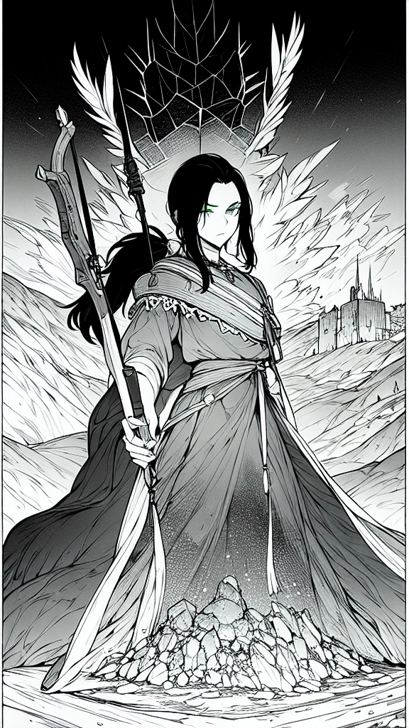 Eira: The Time-Walking Archer — Eira Stormrider is a woman caught between eras. With her lithe figure and raven-black hair, she cuts an imposing figure. Her piercing green eyes seem to hold the weight of centuries. She navigates the complexities of a world where ancient traditions and futuristic technology coexist, her bow and arrows always at the ready.