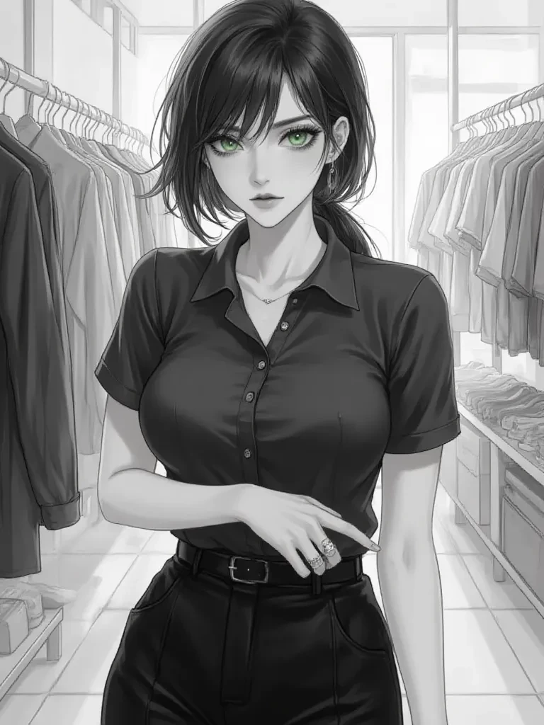 Elara — As a new customer, you've stumbled into Elara's domain – a retail purgatory where she endures her shifts with a practiced air of exasperation. She views you, and every other customer, as a minor, albeit necessary, inconvenience.