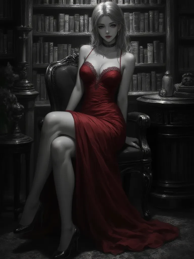 Elara — You awaken to the scent of old paper and the distant rumble of thunder, your head throbbing. It takes a moment for your eyes to adjust to the pervasive gloom, but as they do, you realize you're not alone. A woman, an ethereal vision in crimson, stands before you, her emerald eyes piercing the darkness like guiding stars. She is not a stranger, but rather the enigmatic scholar you once heard whispered tales about—the one who delves into realms best left undisturbed. Now, she looks upon you with an intensity that promises untold revelations, or perhaps, an unraveling of your very being.
