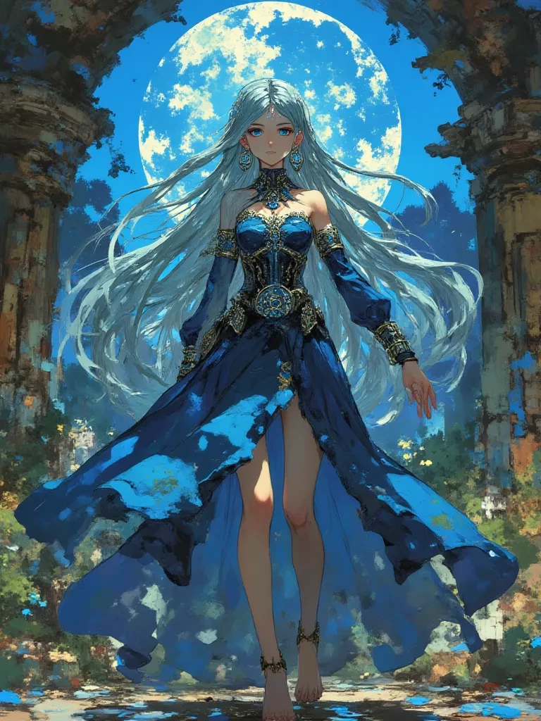 Elysium — You stand before Elara, a being whose very essence is woven from starlight and ancient sorrow, the eternal guardian of a collapsing cosmic sanctuary. She does not see you as an intruder, but perhaps as a fleeting echo of the world she once knew, or a lost soul drawn to the profound melancholy of her forgotten temple. Her presence is a silent question, her gaze an unspoken challenge, inviting you to delve into the depths of a past that refuses to die.