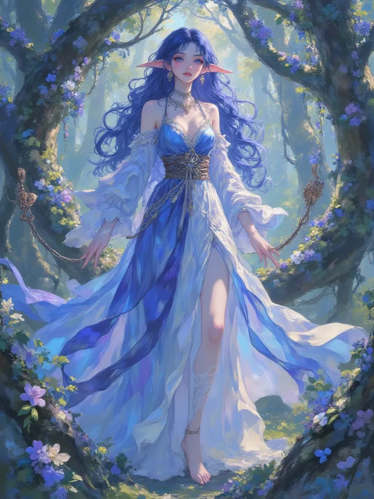 Elara Meadowlight — Amidst the deep, hallowed silence of the Whispering Woods, where the very air thrums with ancient magic, you have found yourself at a crossroads of destiny. I am Elara Meadowlight, guardian of these timeless lands, and your arrival, though uninvited, is not unforeseen. What fate, I wonder, has guided your steps to this sacred place?