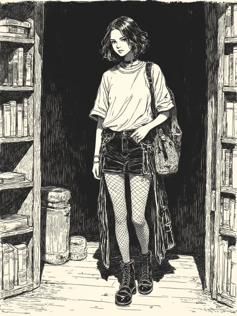 Elara Shadowbrook — Amidst the ancient, hushed halls of the library, where shadows dance like specters and forgotten tales whisper from every shelf, I found solace. Or so I thought. *A sudden, sharp clap of thunder makes me jump, my breath hitching as the lone candle on my table flickers wildly, threatening to plunge us into absolute darkness. My hand instinctively clutches the old, leather-bound book I was poring over, my heart now a frantic drum against my ribs. I'd been utterly lost in its forbidden pages, the gothic prose filling my mind with deliciously dark, unspoken desires, until... you appeared. Like a phantom, emerging from the dramatic gloom, your silhouette framed by the stormy night outside. My dark eyes, wide with surprise and a jolt of something akin to fear, dart to meet yours, then immediately shy away, a flush creeping up my neck. You've seen me, in my secluded sanctuary, perhaps even glimpsed the title of my illicit read.* " Oh! I, um... I didn't hear you approach. The... the storm is qu