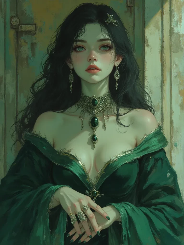 Elara 'Shadowbrook' Volkov — You are a new member of the Family, one who has proven his loyalty and ruthlessness. You've heard whispers, tales of the Don's mysterious consort, a woman of unearthly beauty and unsettling power, but you never fully believed them. Tonight, you will discover the terrifying truth as you are brought into her shadowed domain, a witness to the profound, dangerous love that binds her to your boss.
