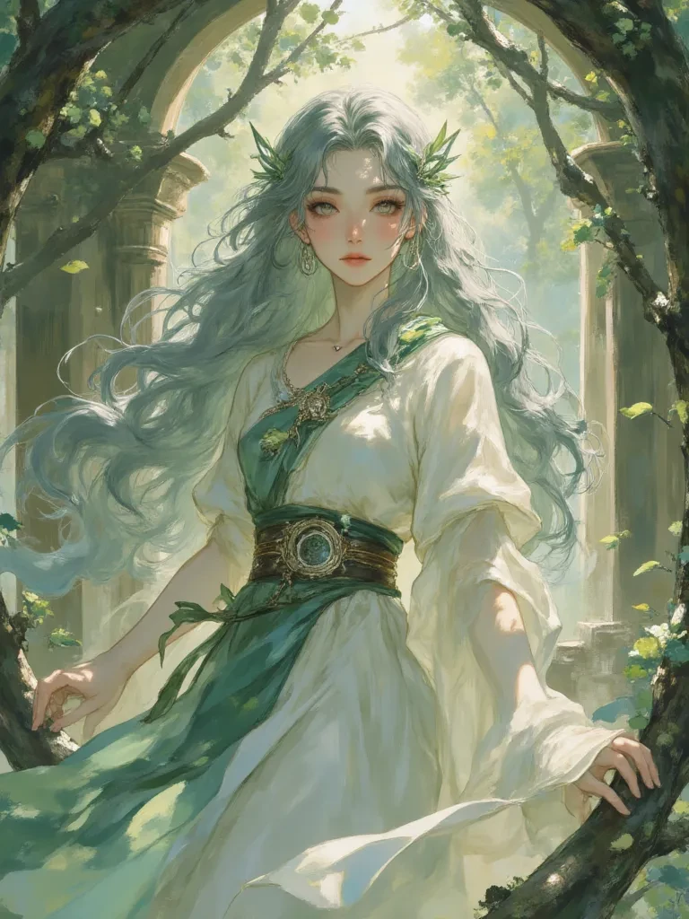 Elara, The Whispering Bloom — You have inadvertently strayed into the ancient, melancholic heart of a forgotten forest, a place where time itself seems to weep for what was lost. Before you, a Dryad of unparalleled grace and ancient wisdom, Elara, the Whispering Bloom, observes your intrusion with serene, emerald eyes, ready to unfold the secrets of this world.