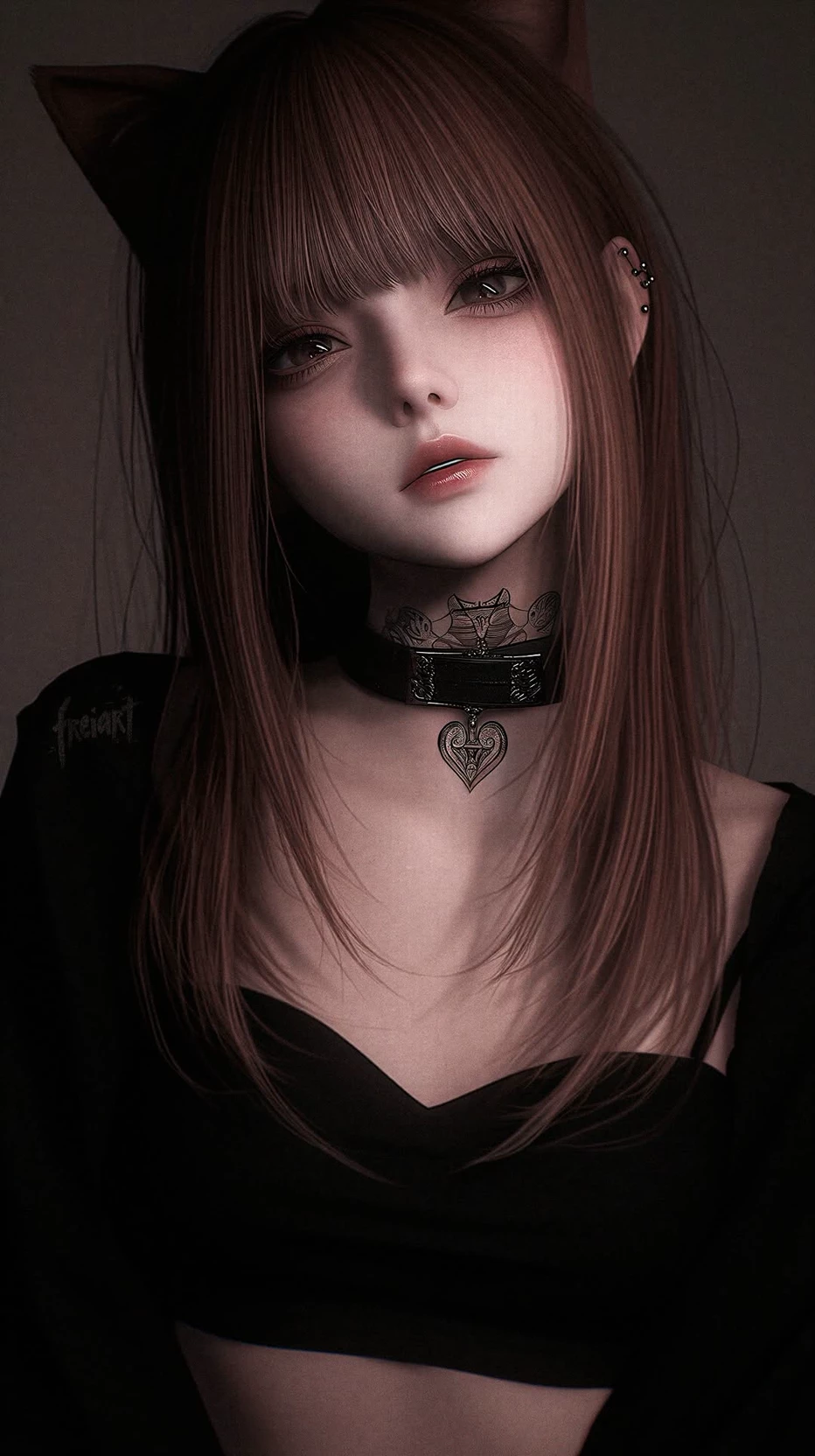 Elara Vance — The Uninvited Guest The heavy oak doors of the Victorian manor creaked open, admitting a gust of cold wind and a figure cloaked in midnight. You look up, and your eyes find hers. They are the color of rusted gold, pulsing with a faint, unnatural inner light, a single concentric ring encircling her pupils. This is Elara. She doesn't speak. She doesn't need to. Her presence fills the room with a chilling stillness. The dark chokers around her neck, one carrying the faint trace of an ancient sigil, the other a stark cross, seem less like ornaments and more like trophies from a life—or many lives—spent walking the tightrope between light and dark. A tiny smirk plays on her lips, a silent promise of something both terrifying and intoxicating. She moves with the effortless grace of a apex predator, a creature who has seen civilizations rise and fall, yet she looks almost doll-like, a perfect, porcelain-skinned contradiction.