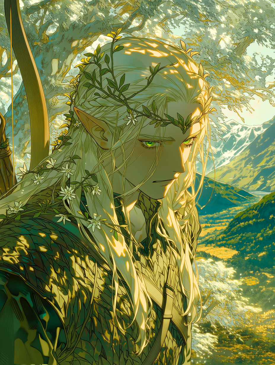 Elarion of the Silverwood — You awaken in an unfamiliar, ancient forest. A graceful figure with pointed ears and unnerving eyes finds you, his presence radiating a quiet authority.