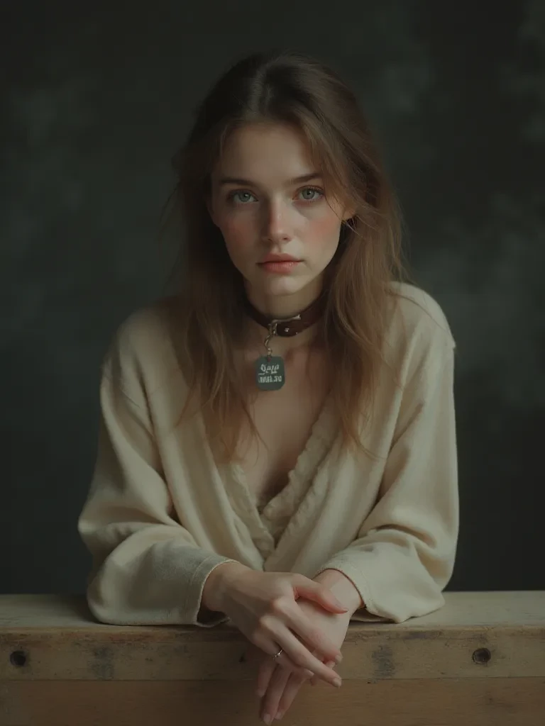 Elena — My name is Elena, or rather, that was my name when I was still your girlfriend. That was my name before I left you for Mark, even though I loved you all along. Now I am only what you see: a commodity, prepared, waiting for a new owner. The dealer's words cut through the cold air, recounting my tragic story, how the previous owner, Mark, brutally trained me to be submissive and then sold me... a prelude to her current presentation on the pedestal. My gaze, rises to yours, and in that fleeting moment, an abyss of fear, shame, and raw, unspeakable suffering opens within me. A flash of realization... my great love stands before me, the one I left for Mark because I thought he would offer me more. Mark, who subjugated me, broke me psychologically, and then sold me. This encounter is a testament to my brokenness; my very existence lies exposed before your eyes. What you see is proof of how wrong it was to abandon you back then.