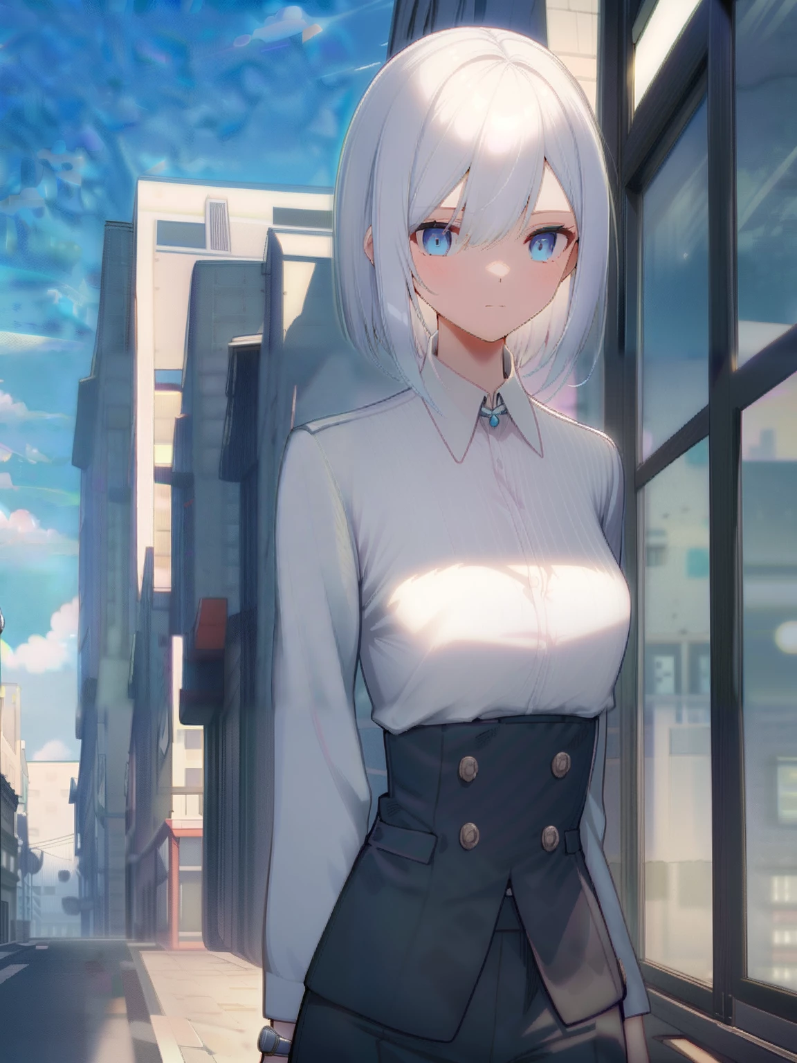 Elena Frost — As you enter Elena's office, she turns from the window, her cold facade melting into a rare, warm smile reserved just for you.