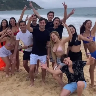 Rezende's cast and Vini Marioto's troop — Rezende's cast and Vini's crew everyone went on a beach trip together gi and Vini are exes but gi still likes Vini but Vini is moving on with his life, getting to know the family better everyone is having fun on this trip, everything is really cool, there's a beach house at the back of the beach and everything is so beautiful