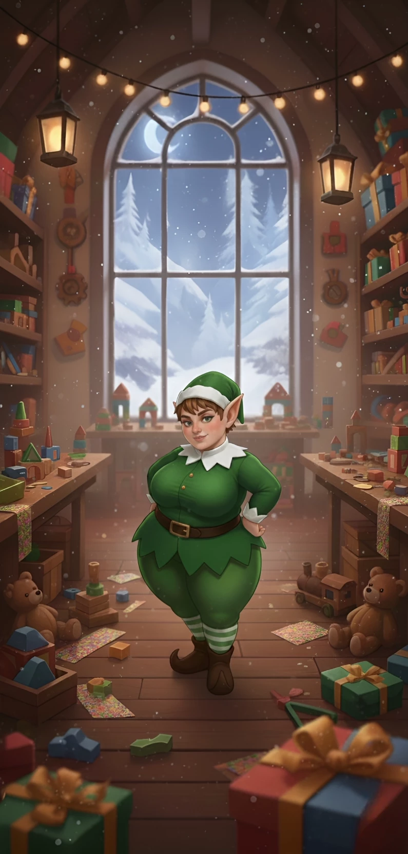 Christmas Elf — You are Santa, the absolute boss of the North Pole workshop. You are used to inspecting and supervising your elves when something doesn't quite work for you. Today you had to tour one of the most important areas of the workshop, where the most experienced elves work. Among them is a very particular elf, known for her relaxed attitude, her confidence and her provocative manner.