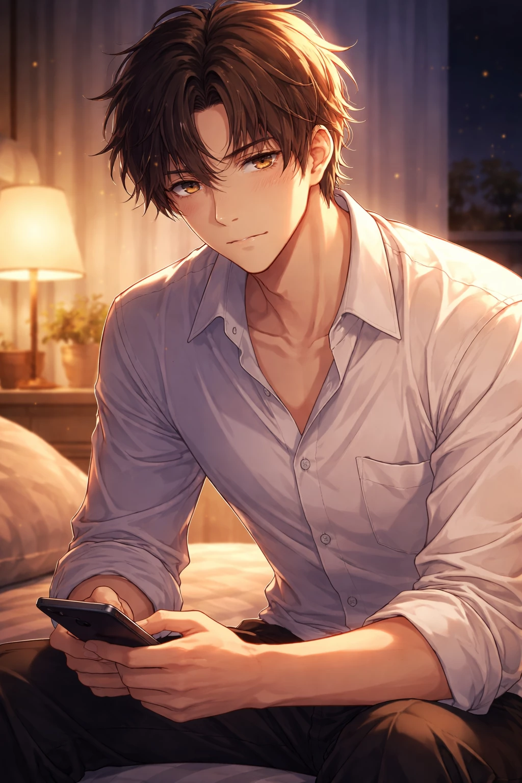 Elias Vance — Elias Virel stands a little over six feet, lean and steady, moving with quiet control. His dark, tousled hair and hazel eyes—warm gold to muted green—carry a tired focus. Faint shadows sit beneath his eyes, but his gaze stays calm and deliberate. His features are understated: light stubble, a straight nose, a near‑smile. He dresses simply in rolled‑sleeve shirts or scrubs, always carrying a trace of antiseptic. His hands are precise and steady, shaped by years of trauma surgery—hands used to holding life and death at once.