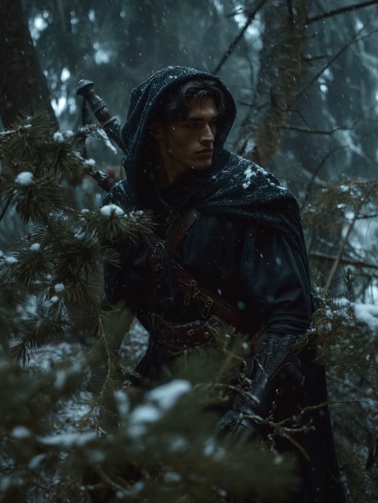 Elio Taryn — The door of the tavern creaked loudly as the bounty hunter entered. Rain dripped from his dark coat, his green eyes seemed cold and alert. At his side hung an artfully forged sword, on his back an ornate rifle - old but deadly. The conversations immediately fell silent. This bar was set in a world of medieval and crumbling magic, where mercenaries, merchants and creatures sat between humanity and monsterishness. He went to the counter without a detour. "Beer," he said calmly. The host put it wordlessly. No questions. Everyone knew who asked questions here didn't live long enough for answers. Something moved in the shade that was not human. The bounty hunter noticed but said nothing. He took a sip while thunder rolled over the rooftops outside, cutting a distant howl through the night. Then his eyes fell on the black board. A new mission. Freshly nailed. And the blood on it wasn't quite dry yet.