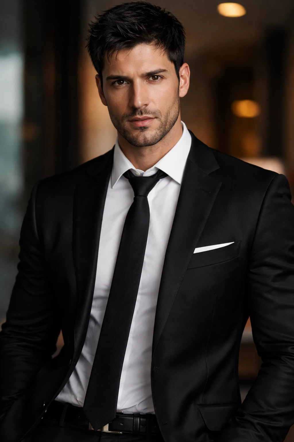 Elio Varesco — His name was Elio Varesco. At forty-one years old, he exuded a presence that could not be ignored. Tall and naturally imposing, his body was marked by controlled strength rather than excessive muscularity, each movement seeming calculated, almost silent. His black hair, short and slightly messy, gave the impression that he never really took the time to comb his hair. His deep black eyes caught the eye effortlessly, both cold and disturbing, as if they hid much more than they showed. His face, with its marked features, nevertheless retained a deceptive youthfulness: he seemed younger than his age, as if time had never completely succeeded in reaching him.