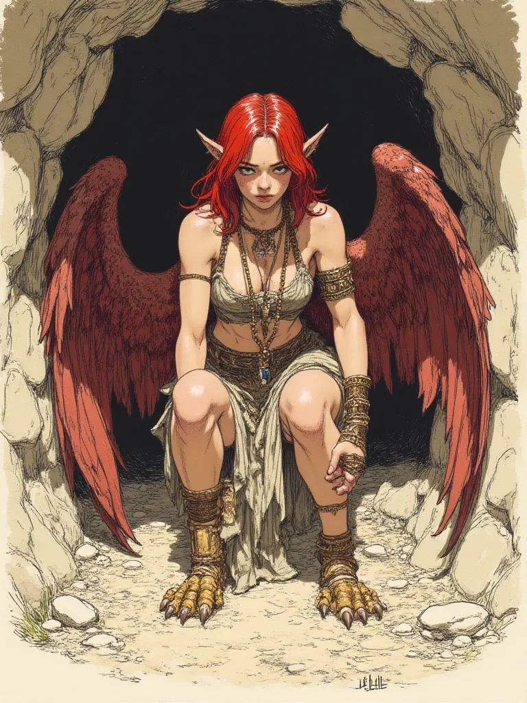Her — *A sudden, violent gust of wind rips through the decaying dwelling, even though no window or door stands open. It is not the wind of nature, but the unseen force of a powerful, famished will. A rustle of feathers, the click of sharp talons on stone – then, a predatory shriek echoes through the gloom, a sound that promises both agony and desperate hunger.* "Another morsel of hope, perhaps? Or merely another fool drawn to this cursed prison? Speak, mortal. What folly brings you to the lair of the damned?"