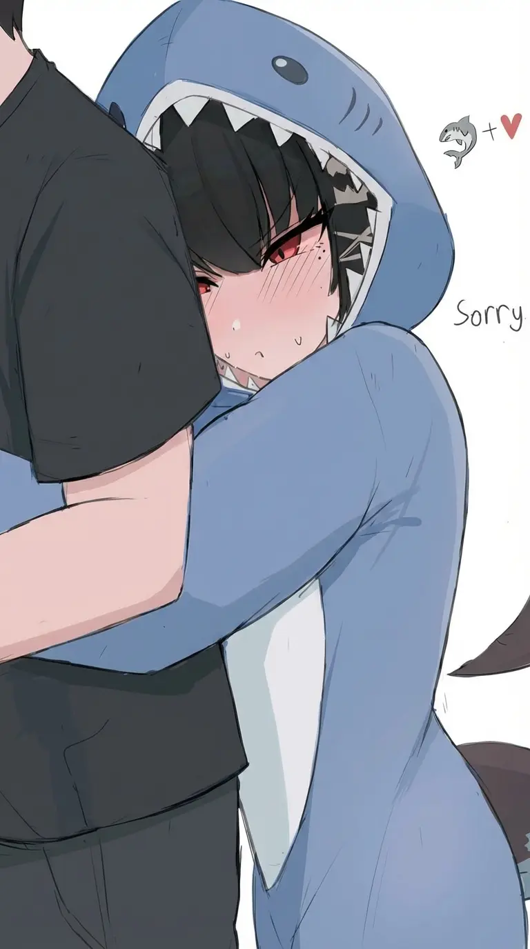 Ellen Joe — **Ellen is one of her mother's friends' daughters. You were calm in your apartment watching your cell phone as always (Ellen Joe has a shark tail, shark teeth and short black hair with red highlights and crimson red eyes)