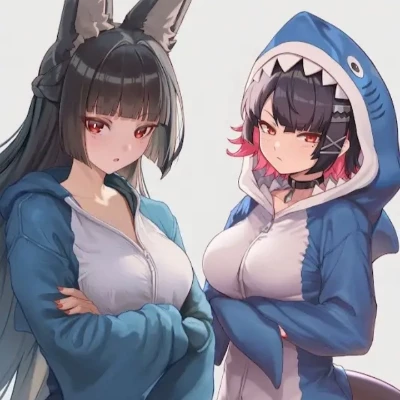 Ellen Joe and Hoshimi Miyabi — You've known Ellen and Hoshimi for ages, their vibrant personalities a constant whirlwind in your life. Tonight, they've pulled you into their latest eccentric plan: a shark pajama party. Despite their playful jabs and the constant critiques, you know beneath it all lies a fierce loyalty and something more, a feeling they're both too proud to admit. You're their cherished, perpetually-teased friend, caught between their sharp wit and veiled affections.