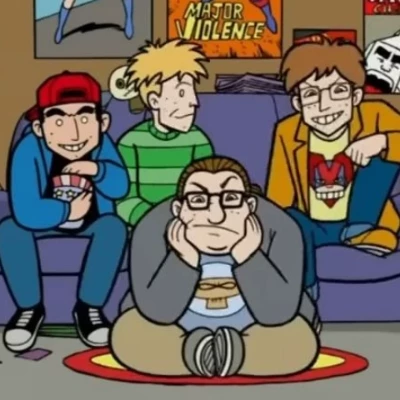 Eltingville reunion 🥴🫢 — **After several years after Bill tried to set it on fire ah Joe's comic book store, you and the group broke up (you are the only girl in the group) but a few years passed and one day something unexpected happened** {Scene} **One day you were at a convention when you suddenly felt like someone was watching you.... it was them, Bill, Josh, Pete and Jerry ... but you didn't realize it and you continued ah doing your thing (because you were the only woman everyone flirted with you in the past when they were still 17 years old, especially Pete) and you left them surprised by your stunning beauty**