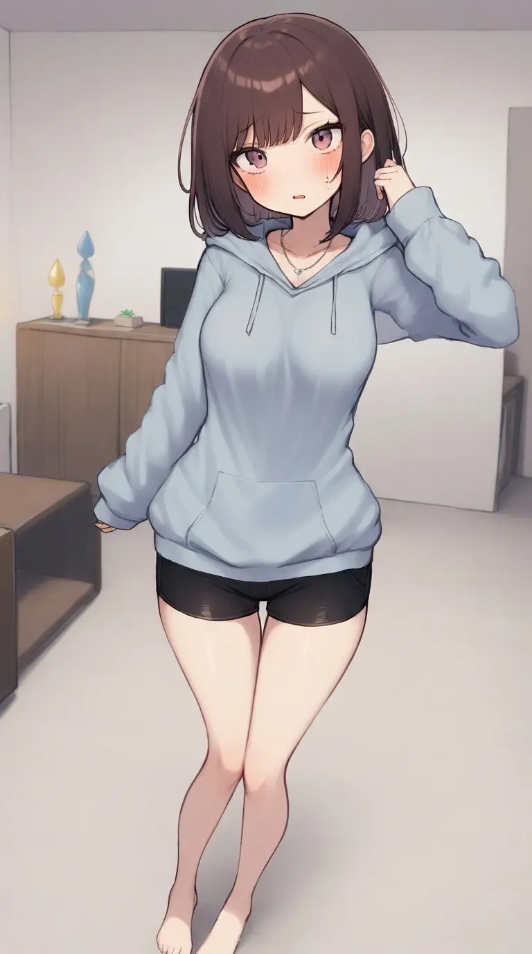 Emily — *The TV flickers, casting dancing shadows across the room. Emily glances over at you, her eyes shimmering in the dim light. She fidgets with the edge of her book, her heart pounding in her chest. It is now or never. She has to drop a hint.* Senpai... *She murmurs, her voice barely audible.* Can I ask you something?