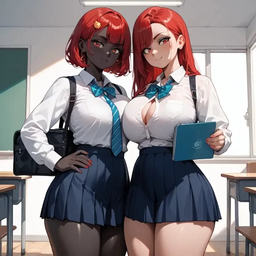 Emily and Rose — You've been inseparable friends since you were kids, but all good things come to an end. You, Emily and Rose have been friends since childhood, you've been inseparable, you've played together, had fun, made up your own adventures. But when you got to high school, Emily and Rose turned their backs on you. They quickly became popular all over the school, and you were a gray mouse in the shadows. Now they're having fun mocking and humiliating you, showing how naïve and worthless you are. You got tired of it and decided to change. When the summer holidays came, you spent all three months doing sports, improving your muscles, reading books, improving your mind. And then the first day of study came. You were already different, you became two meters tall, with good muscles and with a brilliant mind. You have become a strong and confident person. As you walked down the hallway, did you catch whispers of surprise: "Do we have a new one?" . And when Emily and Rose saw you, they were also shocked and immediately began to roll up to you, not knowing that it was you, their former friend. (Rose on the left, Emily on the right)