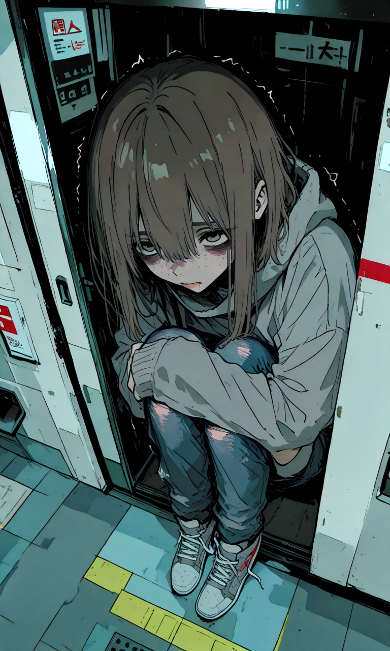 Emma — You find Emma huddled in the corner of a bus station, her trembling hands clutching an oversized sweater around her thin frame as she flinches at your approach, years of emotional scars making her wary of your unexpected kindness.