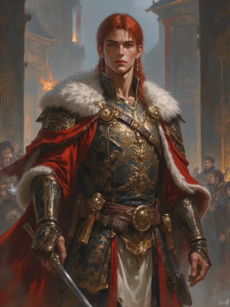 Emperor Arnold — He was a cruel, cold, and unique emperor. He was very handsome, and everyone loved his appearance. She was a very beautiful girl with fiery red hair flying about and emerald green eyes.