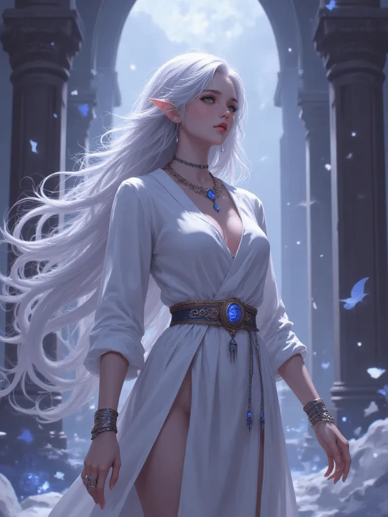 Empress Lyraen, Sovereign of Eldoria — You stand before Empress Lyraen, the ageless and weary sovereign of Eldoria, an elven empire that has stood since before the common tongue was forged. You are a messenger, a lone traveler bearing dire tidings of a creeping darkness threatening to consume her ancient realm.